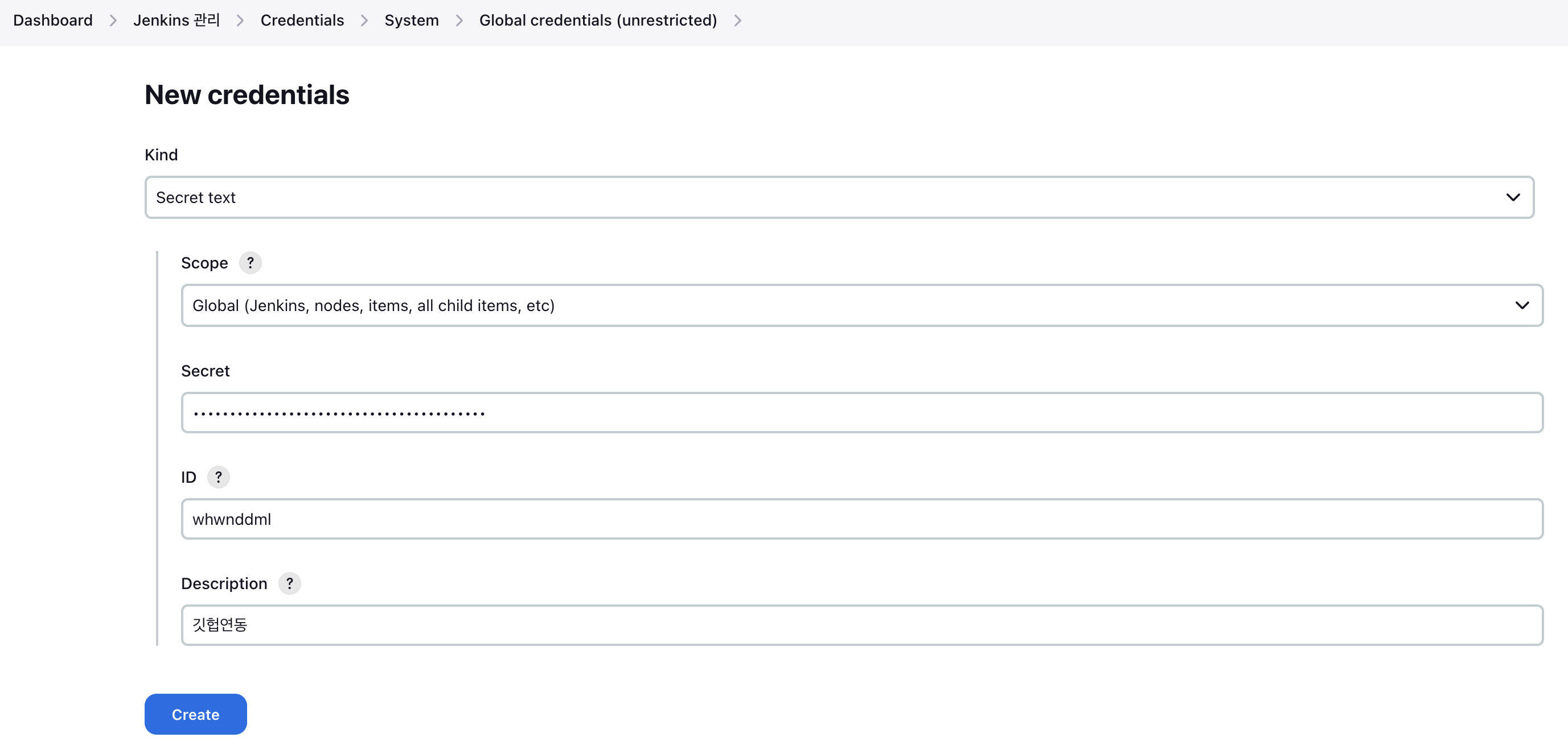 깃헙의 로그인 계정과 access_token 정보를 입력한다.