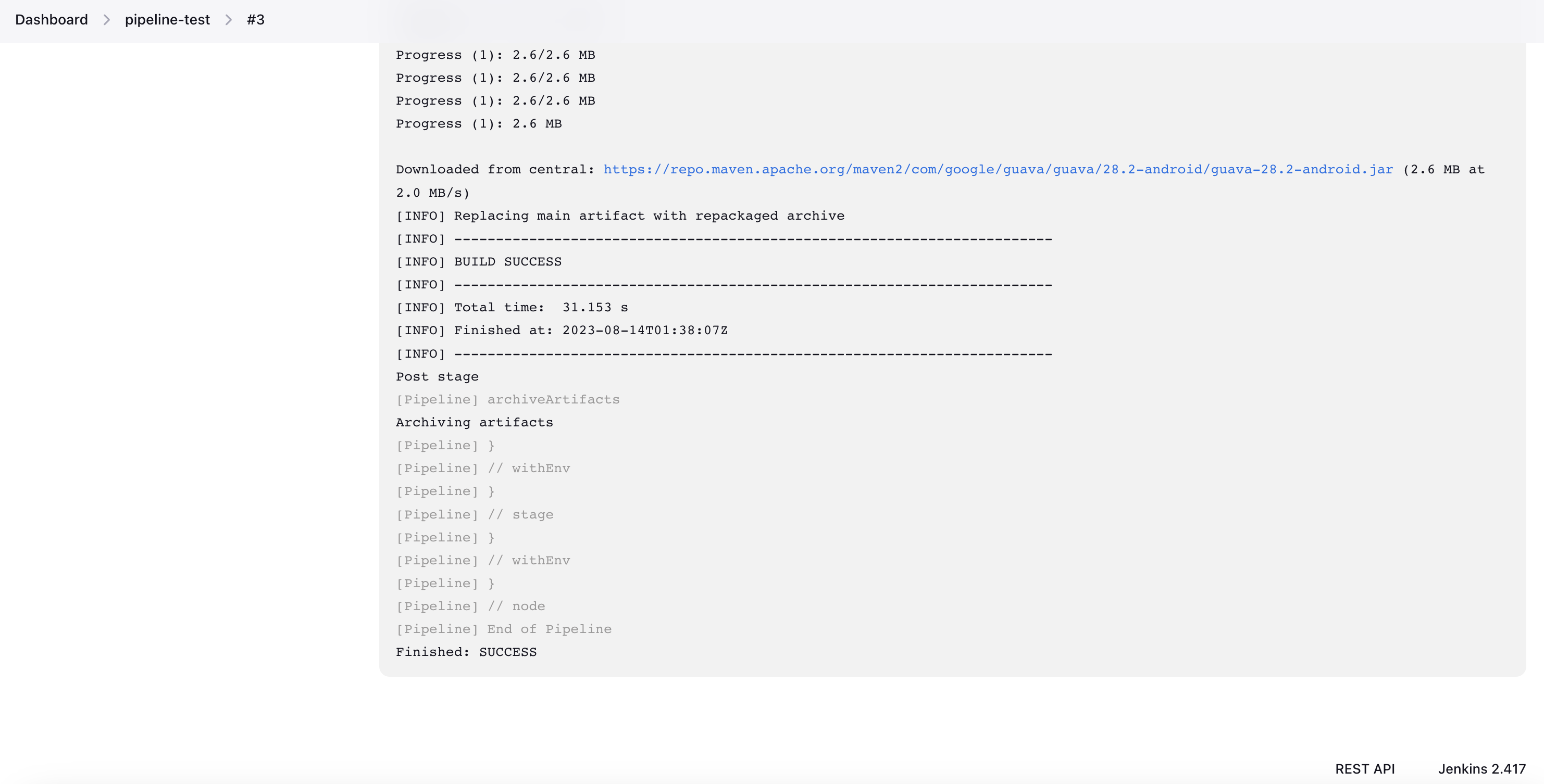 . ____ _ __ _ _ /\\ / ___'_ __ _ _(_)_ __ __ _ \ \ \ \ ( ( )\___ | '_ | '_| | '_ \/ _` | \ \ \ \ \\/ ___)| |_)| | | | | || (_| | ) ) ) ) ' |____| .__|_| |_|_| |_\__, | / / / / =========|_|==============|___/=/_/_/_/ :: Spring Boot :: (v2.7.14) 2023-08-14 02:12:55.118 INFO 704 --- [ main] c.example.demo.BootdemoApplicationTests : Starting BootdemoApplicationTests using Java 11.0.20 on jenkins with PID 704 (started by jenkins in /var/jenkins_home/workspace/pipeline-test) 2023-08-14 02:12:55.125 INFO 704 --- [ main] c.example.demo.BootdemoApplicationTests : No active profile set, falling back to 1 default profile: "default"