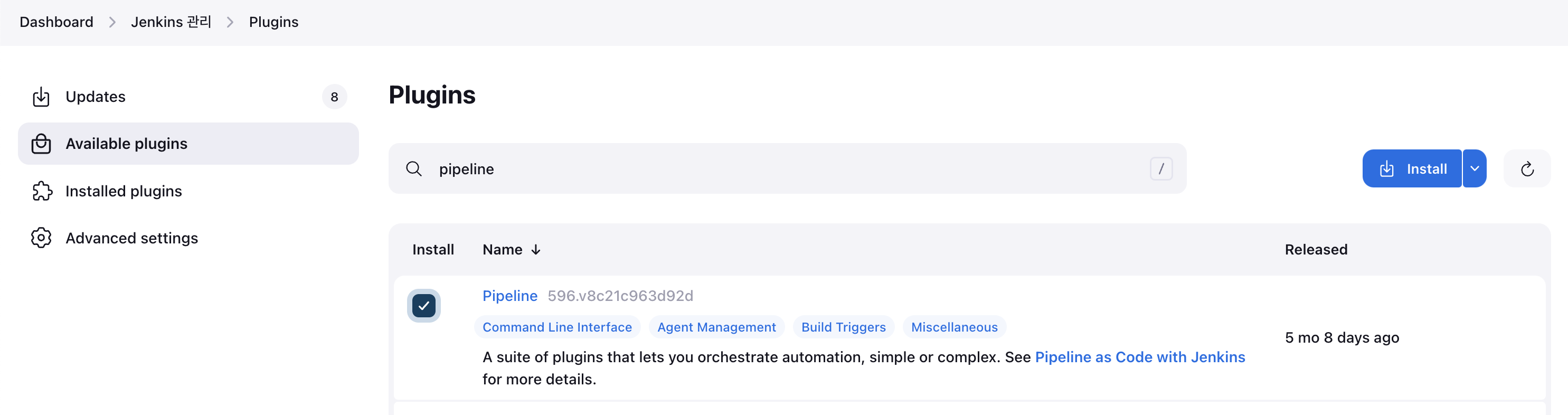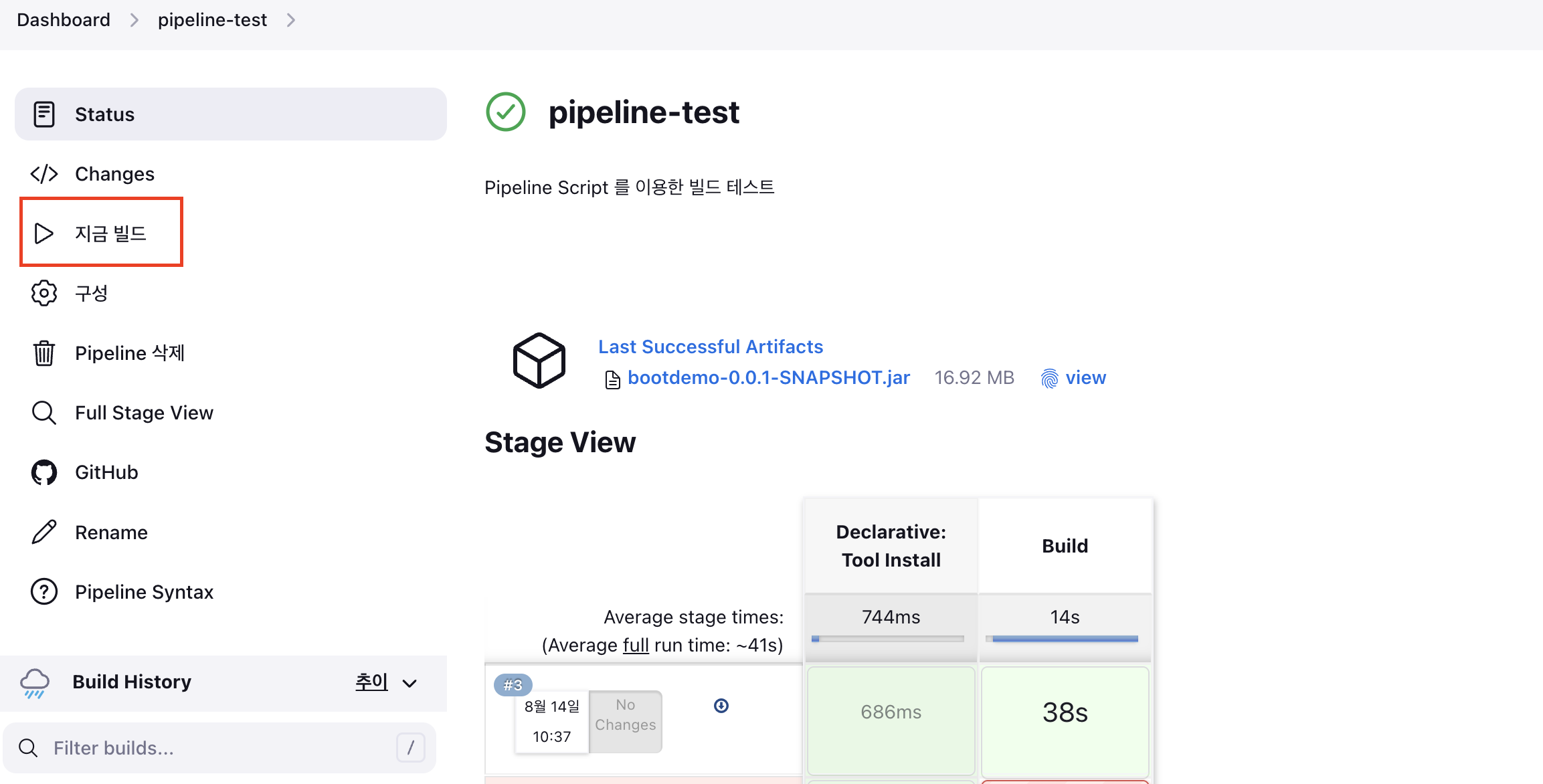 ------------------------------------------------------------------------------------------------------------------- Docker에 Jenkins 로 CI/CD 구축(1/4) Docker에 Jenkins 로 CI/CD 구축(2/4) Docker에 Jenkins 로 CI/CD 구축(3/4) 1. 파이프라인 구성을 위한 플러그인 설치 2. 파이프라인 구성 3. 빌드실행